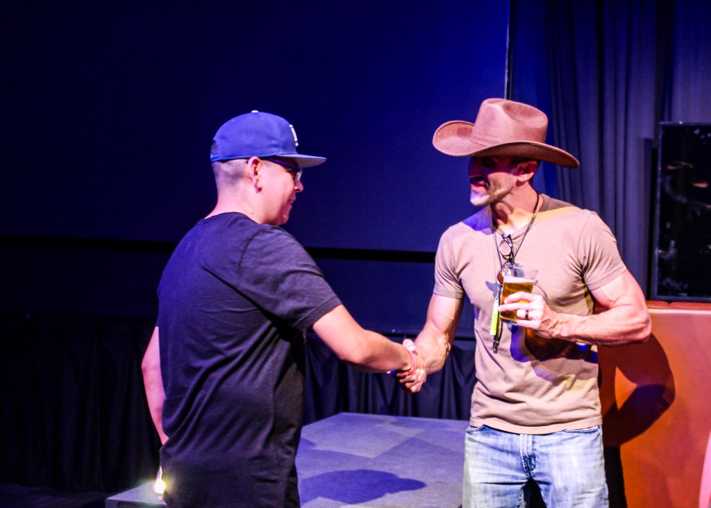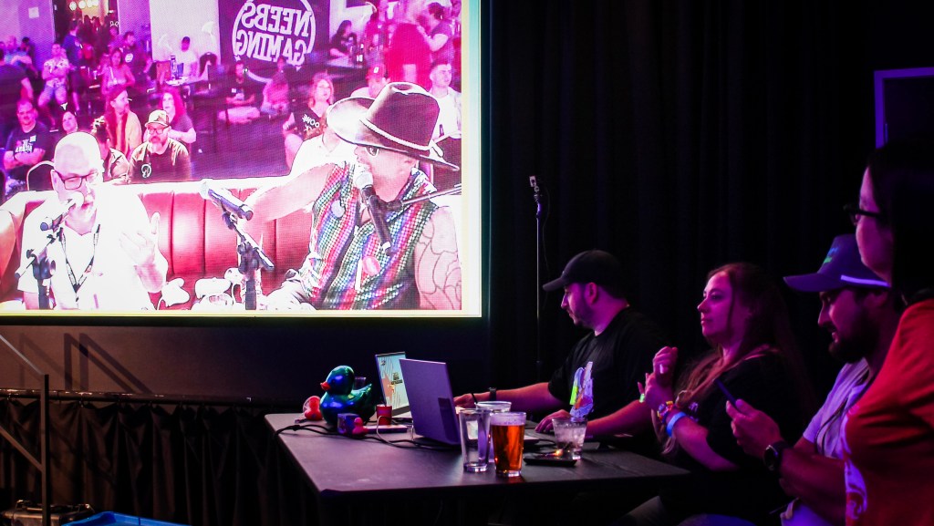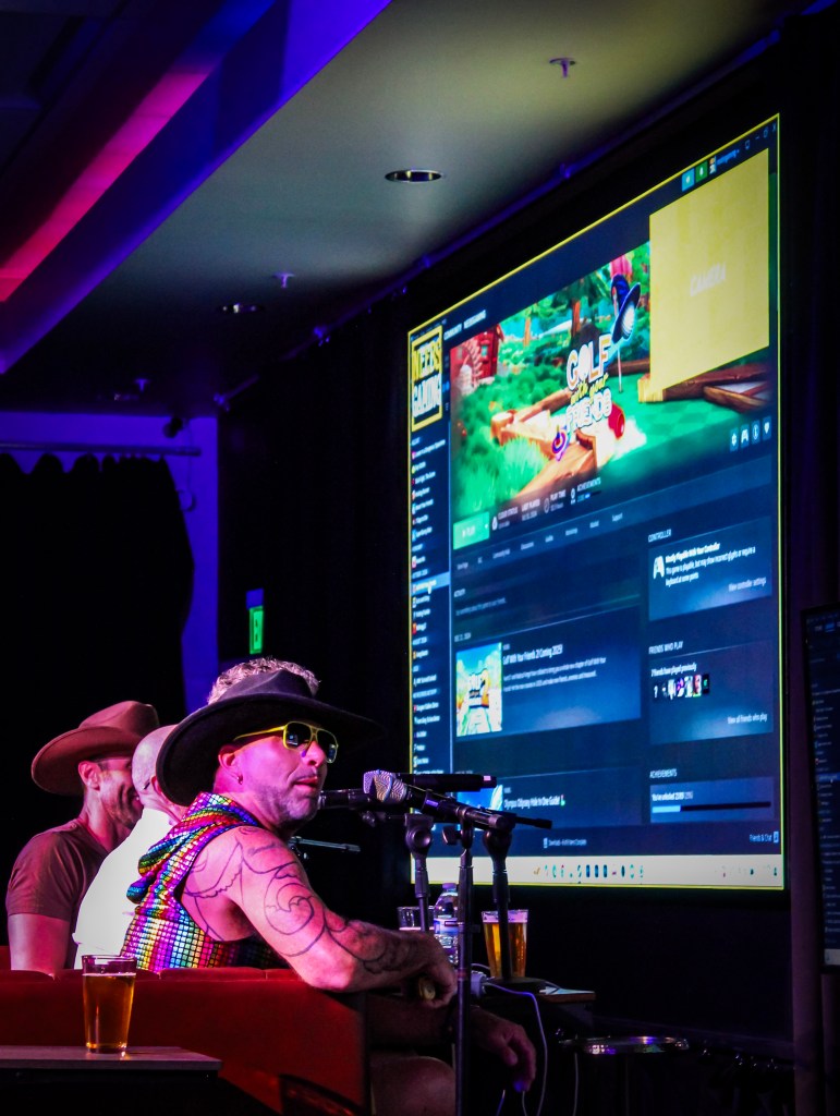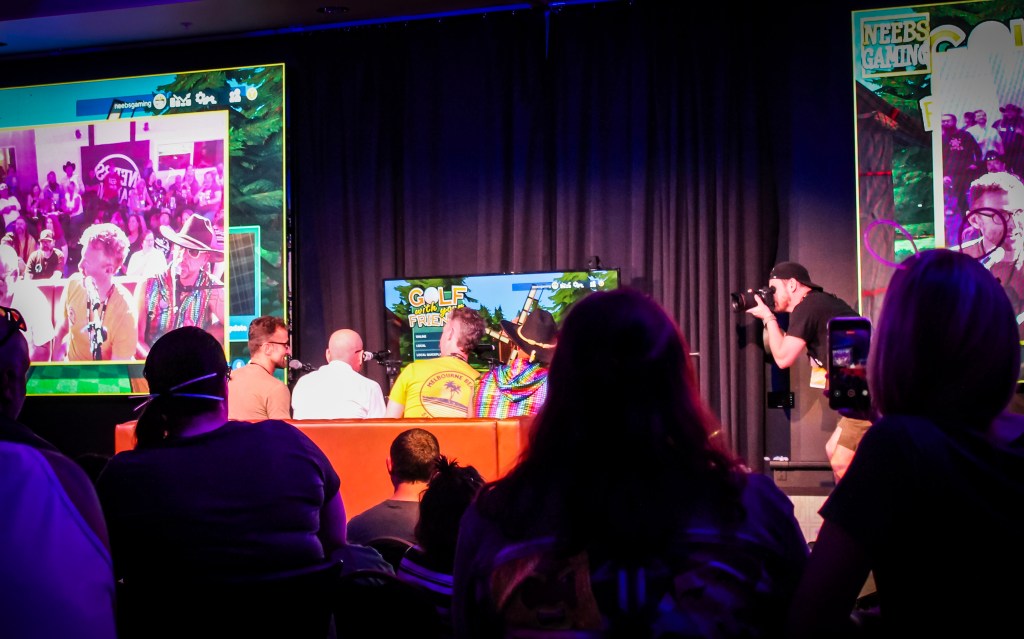 Usually the guys stream live on Twitch every Thursday night but they decided to change things up for the live event and have their stream on a Friday night instead. As per usual they took turns playing video games. Only this time they were surrounded by a couple hundred viewers while thousands more watched from home.